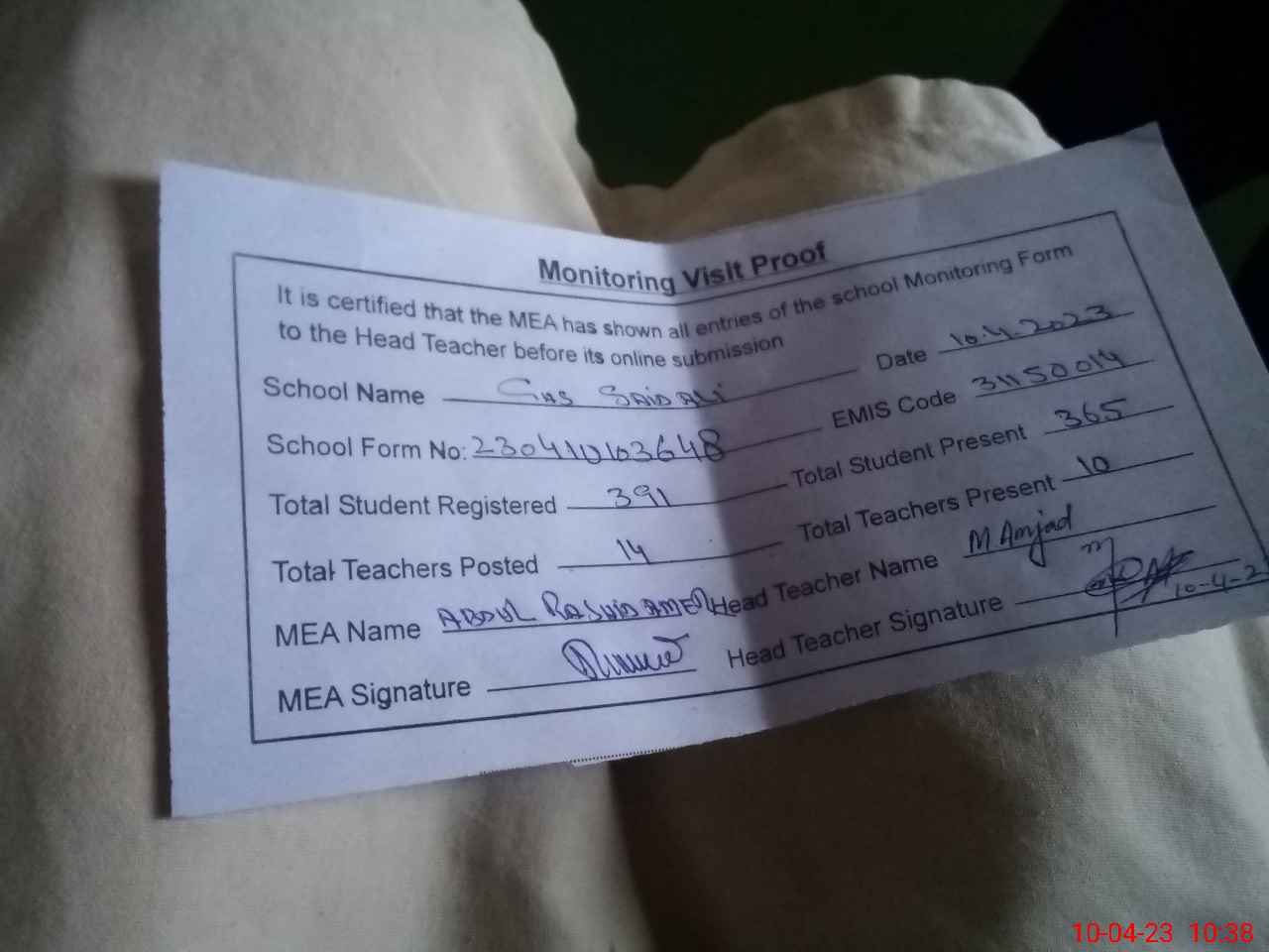 | Certified that this School was Inspected by the Undersigned MEA/DMO Today and the Information Stated Above is as Per Record. | |||||
