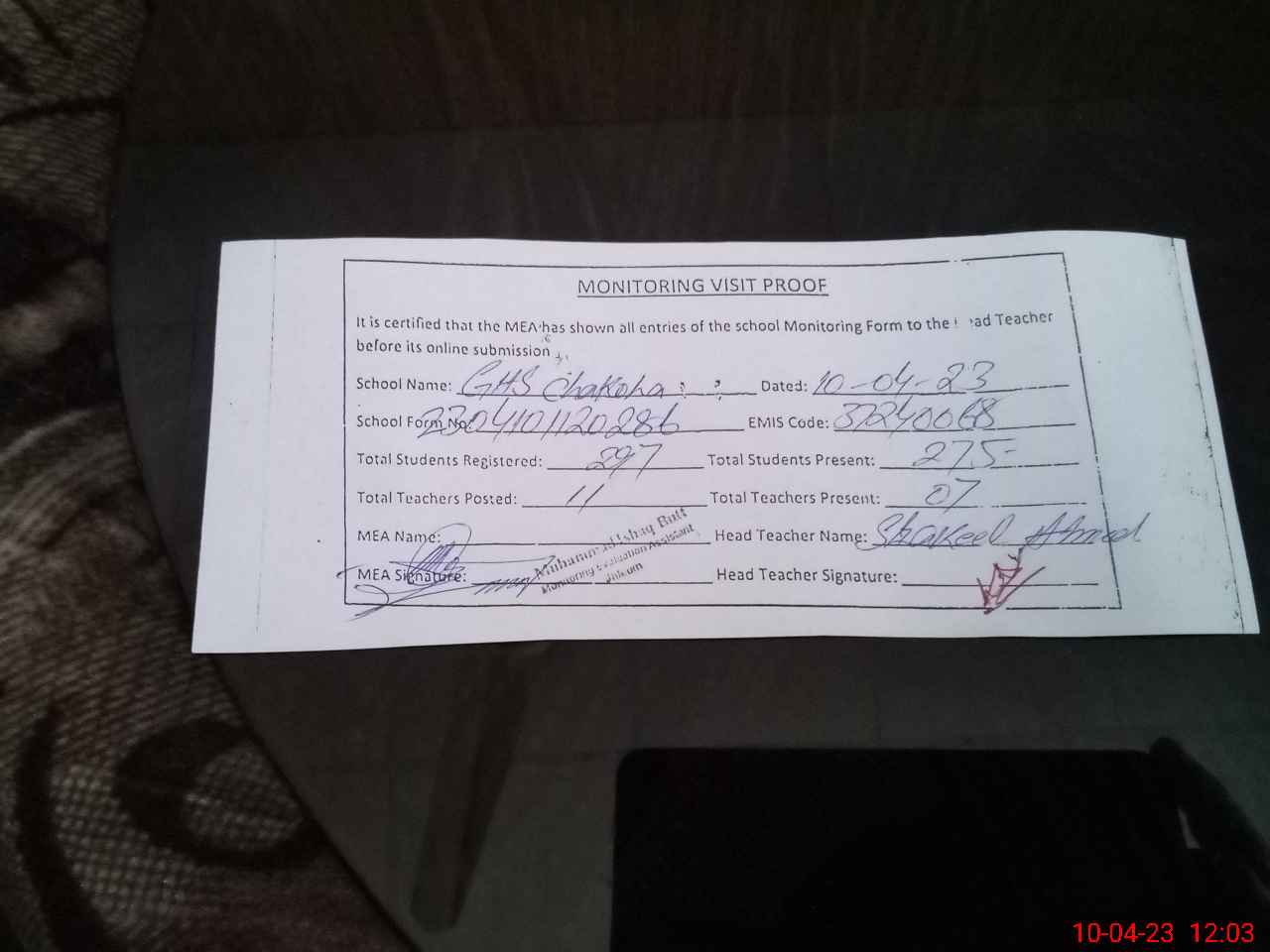 | EMIS Code: 37240068 | Name of School: GHS CHAKOHA | |||