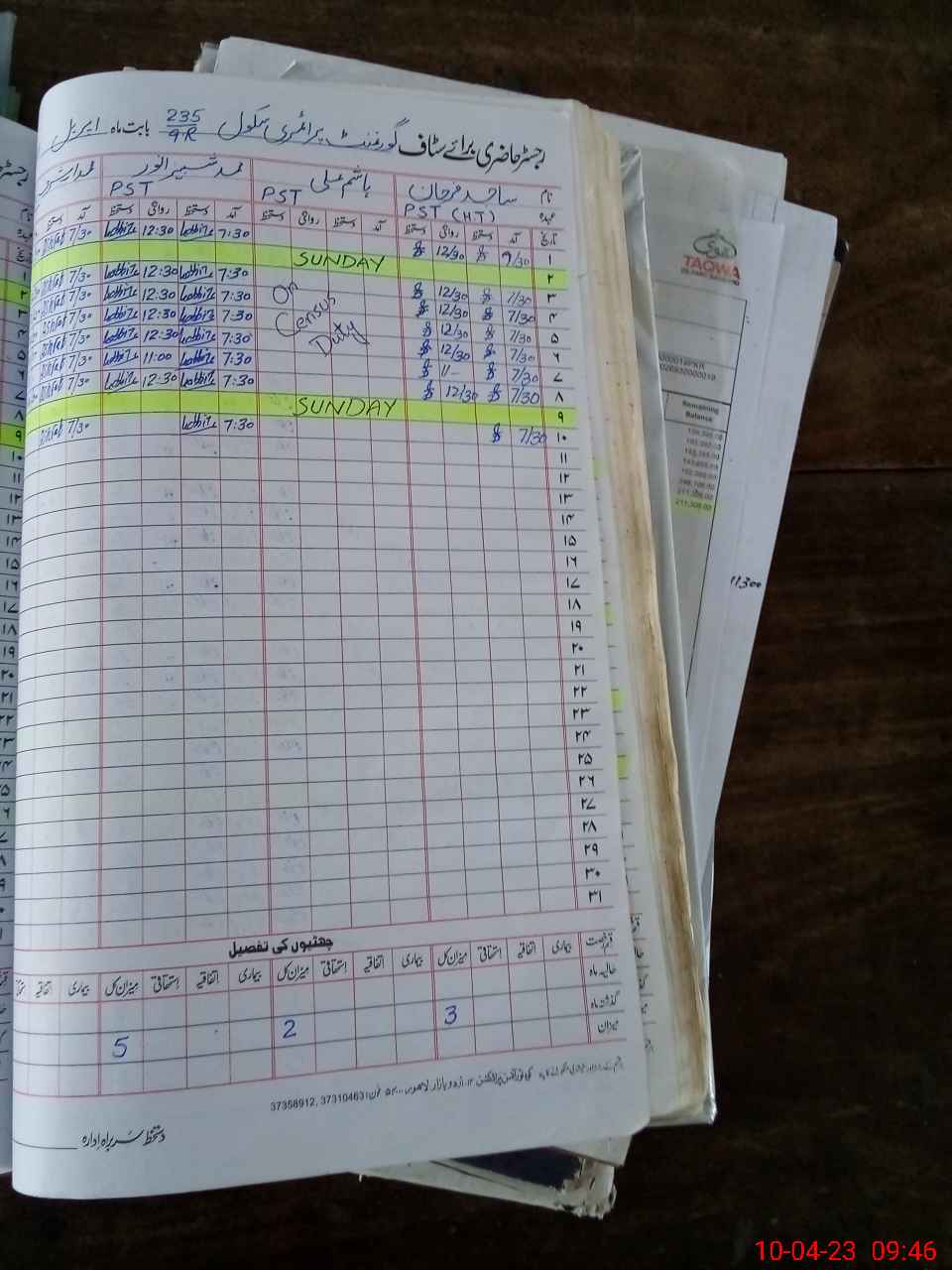 | Name: SA**** FA**** Designation: (School Headmaster's/Headmistress's) PST Phone/Cell Number: 03**** |