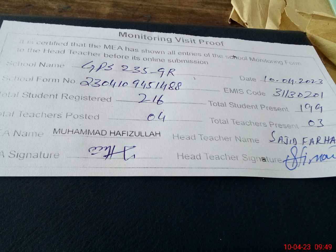 | EMIS Code: 31130201 | Name of School: GPS CHAK 235/9-R | |||