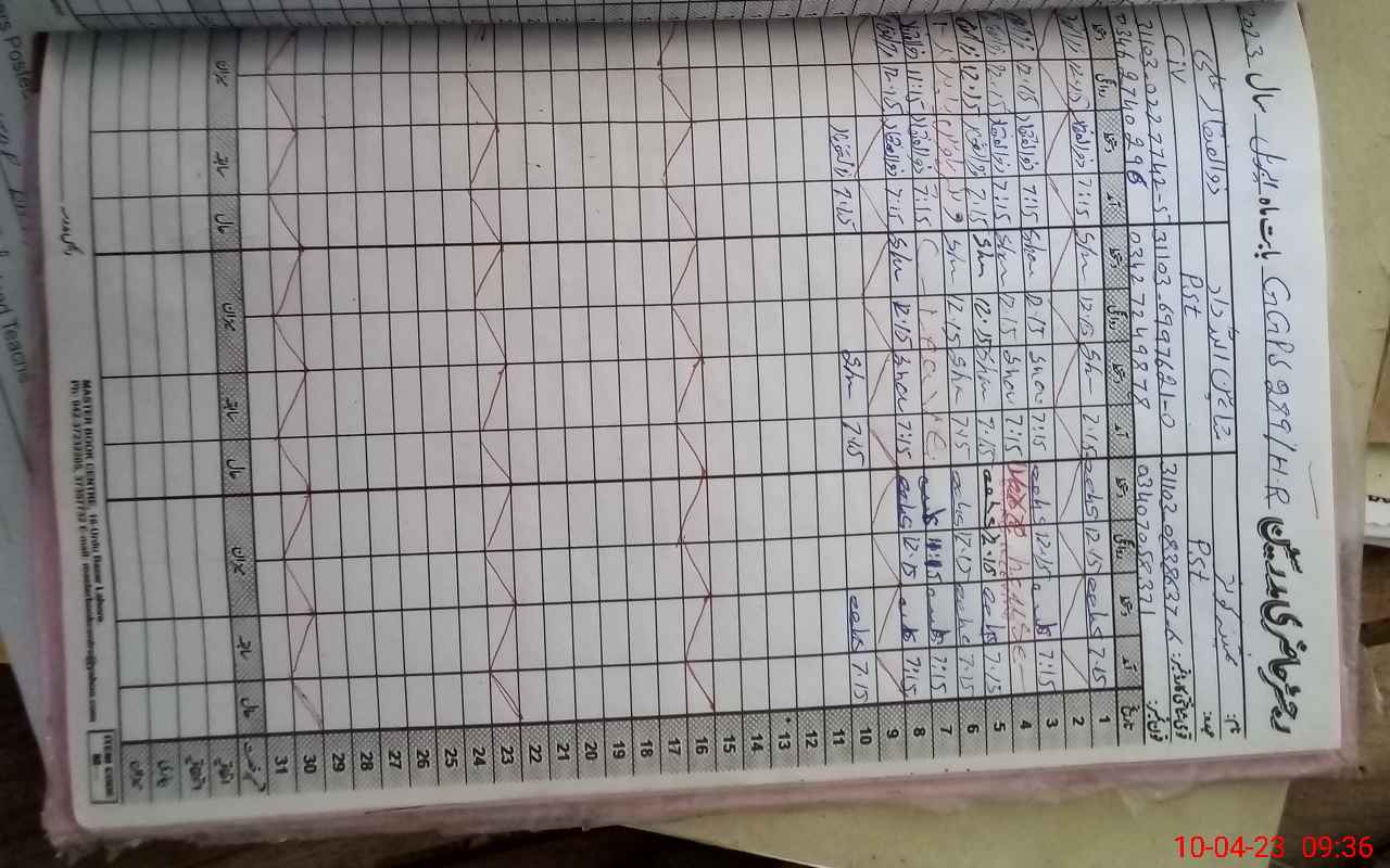 | CNIC | Full Name | Designation | R/C | Absence During Last Calender Month |