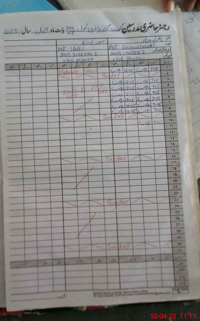 | Name: IQ**** JA**** Designation: (School Headmaster's/Headmistress's) ESE (SC MATH ) Phone/Cell Number: 03**** |