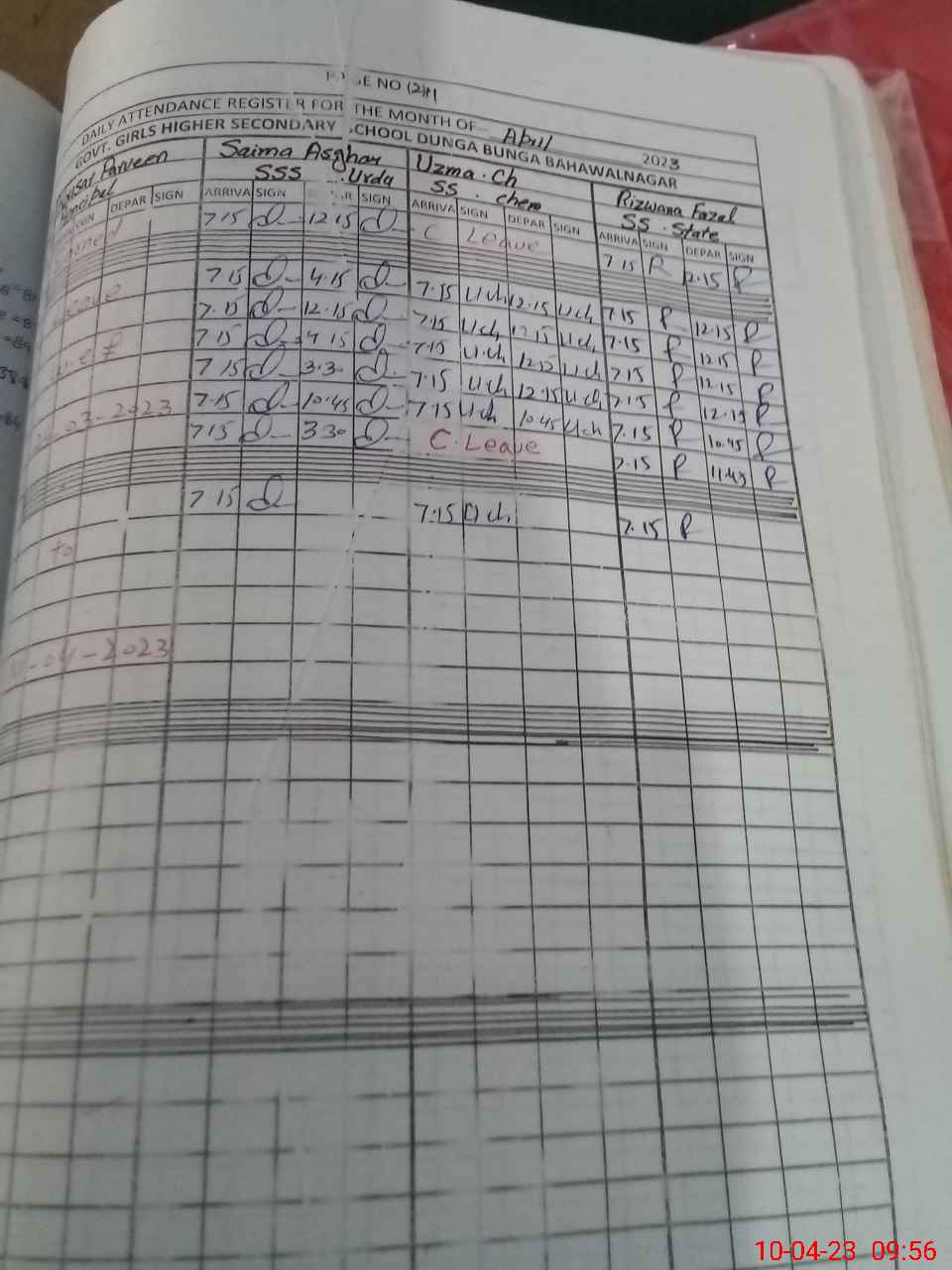| 31**** | Sa**** Ar**** | SST | Regular | 0 | 0 | 0 | 0 | 0 | 0 | 0 | 0 | 0 | Exam Duty |
