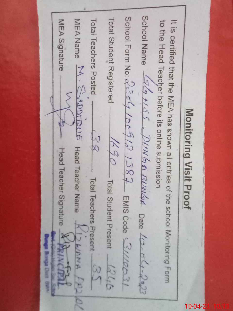 | EMIS Code: 31110031 | Name of School: GGHSS DUNGA BUNGA | |||