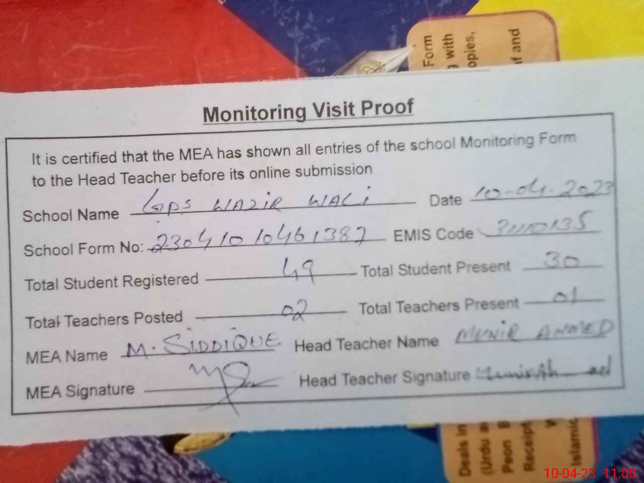 | EMIS Code: 31110135 | Name of School: GPS WAZIR WALI | |||