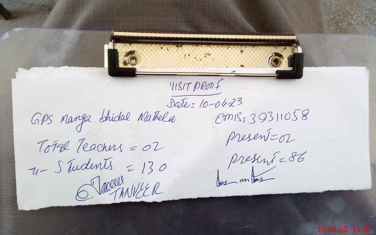 | EMIS Code: 39311058 | Name of School: GPS MANGA BHIDAL MATHELA | |||