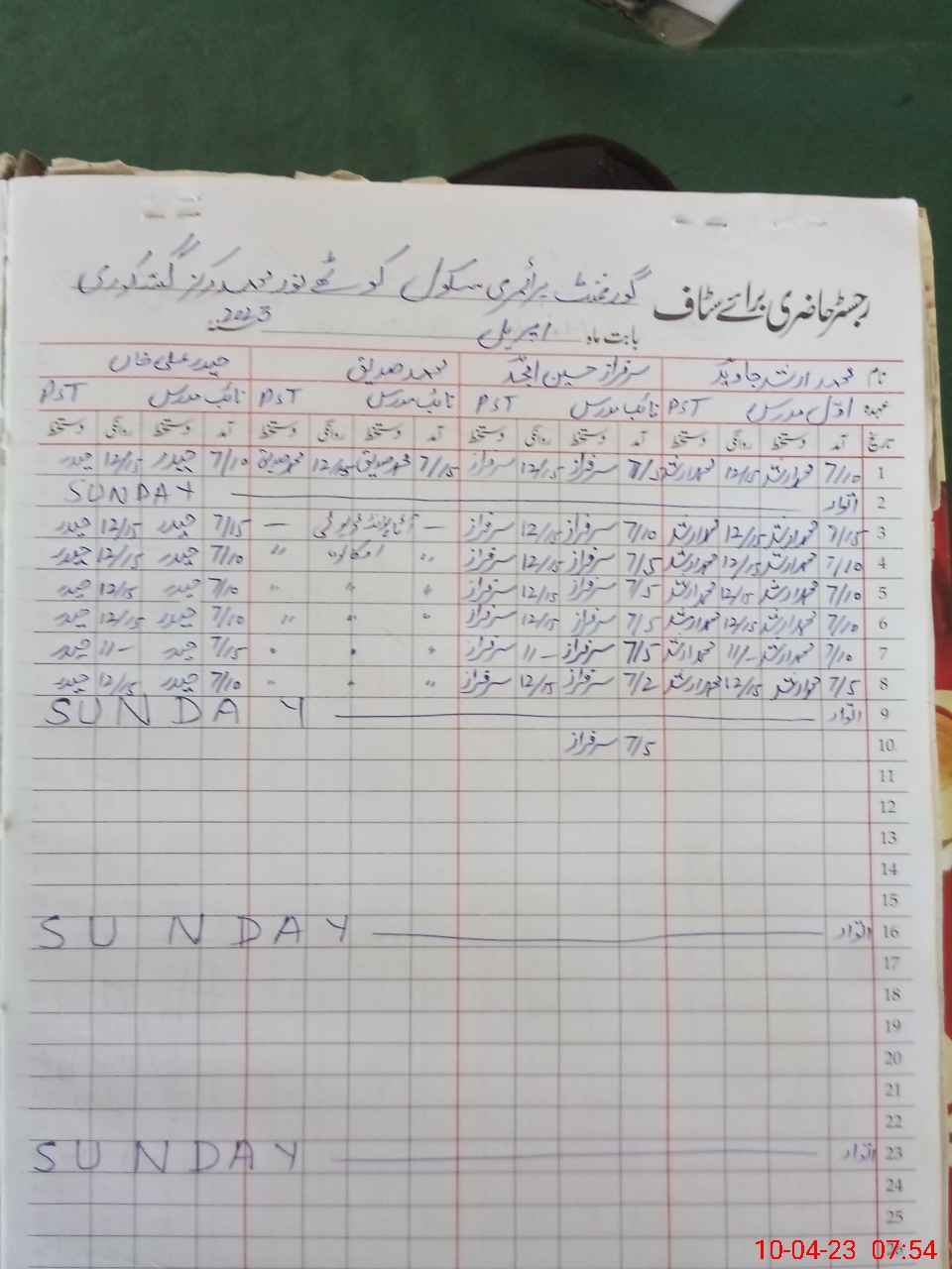 | CNIC | Full Name | Designation | R/C | Absence During Last Calender Month |