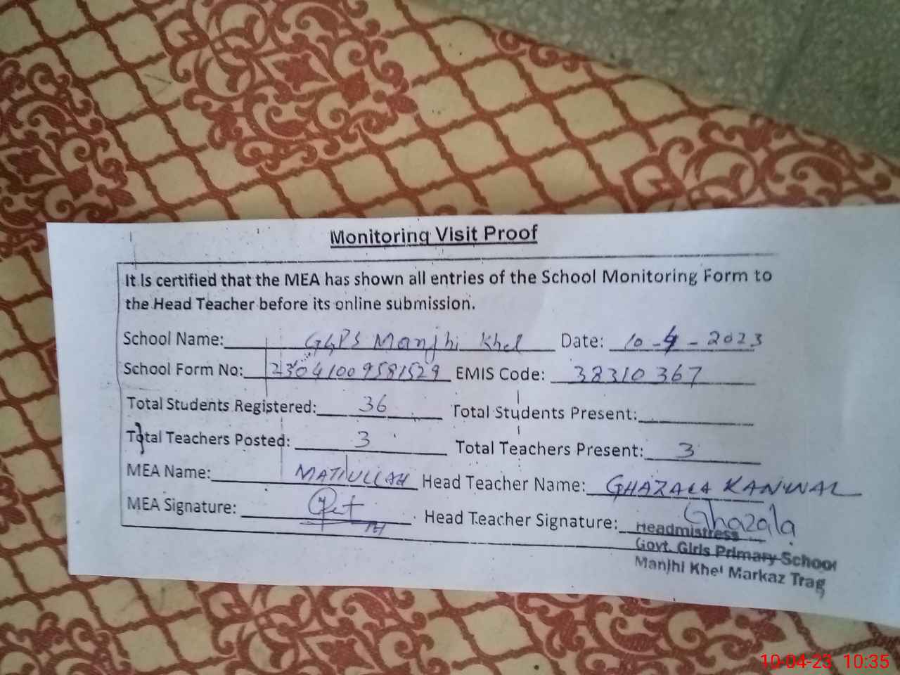 | EMIS Code: 38310367 | Name of School: GGPS MANJHI KHEL | |||