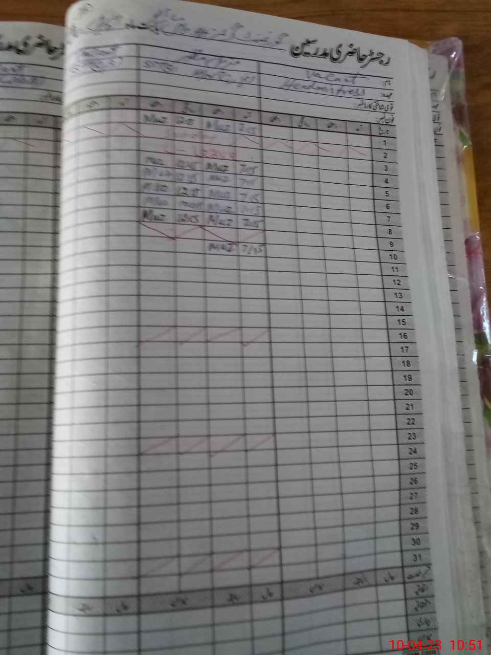| CNIC | Full Name | Designation | R/C | Absence During Last Calender Month |