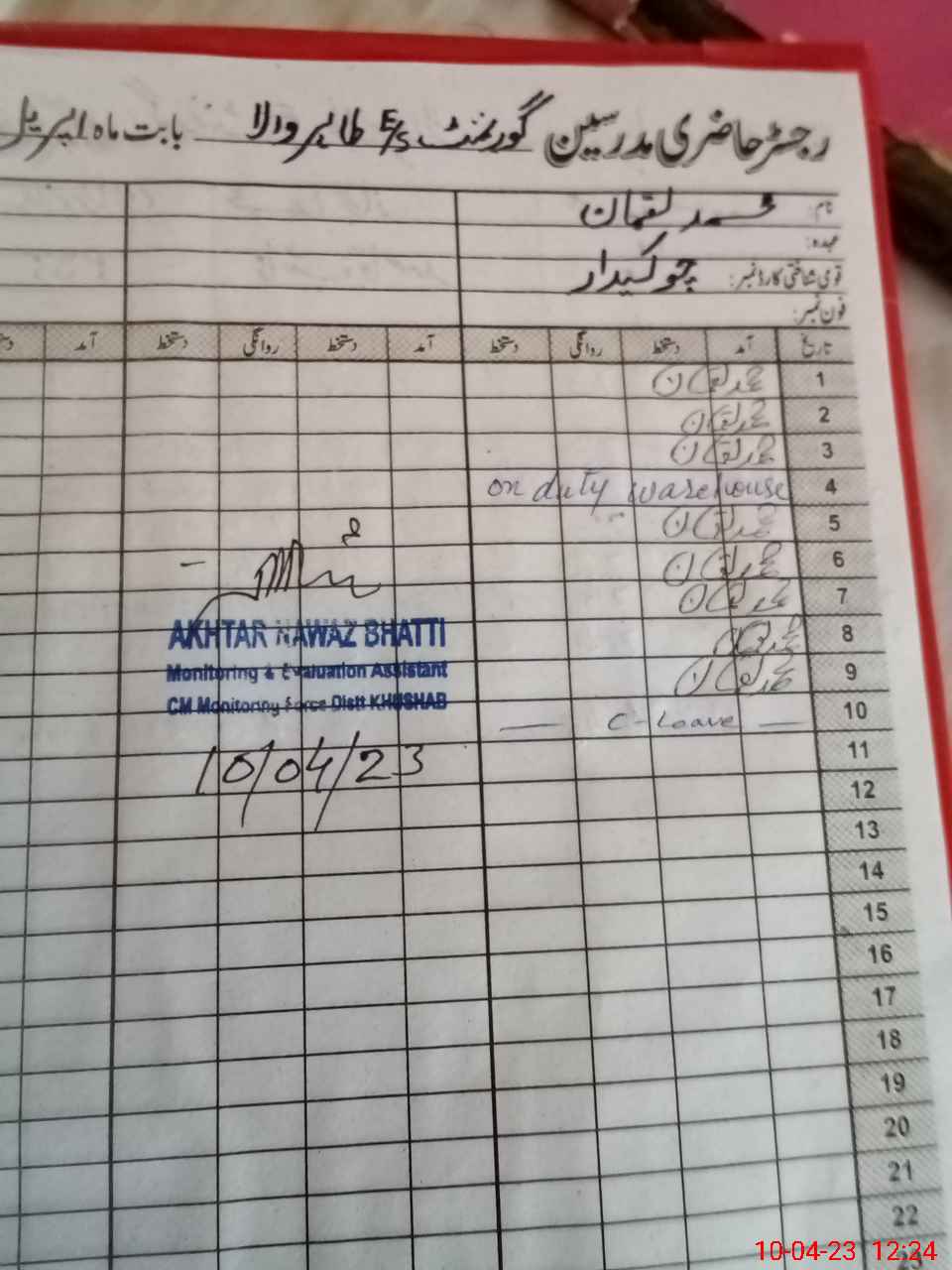 | 38**** | Mu**** Ih**** Kh**** | PST | Regular | 0 | 0 | 0 | 0 | 0 | 0 | 0 | 0 | 0 | Exam Duty |