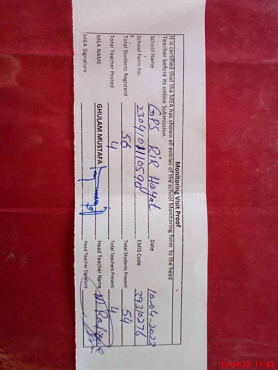 | EMIS Code: 39310276 | Name of School: GPS PIR HAYAT | |||