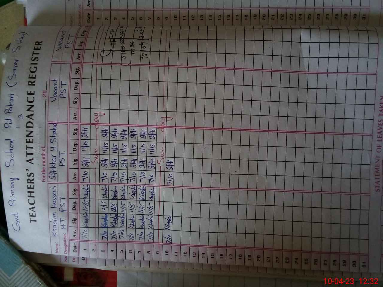 | Name: Kh**** Hu**** Designation: (School Headmaster's/Headmistress's) Pst Phone/Cell Number: 03**** |