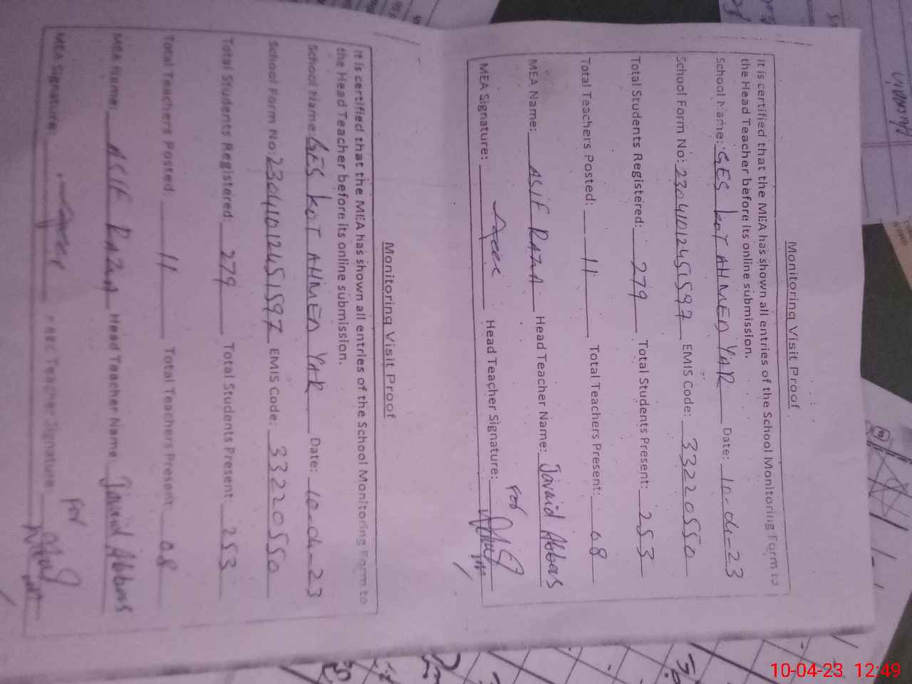 | EMIS Code: 33220550 | Name of School: GES KOT AHMAD YAR | |||