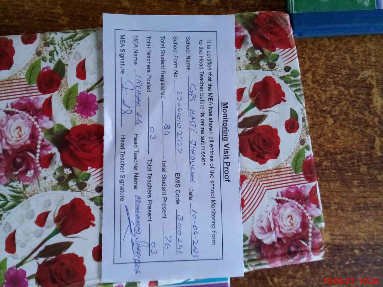 | EMIS Code: 31110241 | Name of School: GPS BASTI JHADUWAN | |||