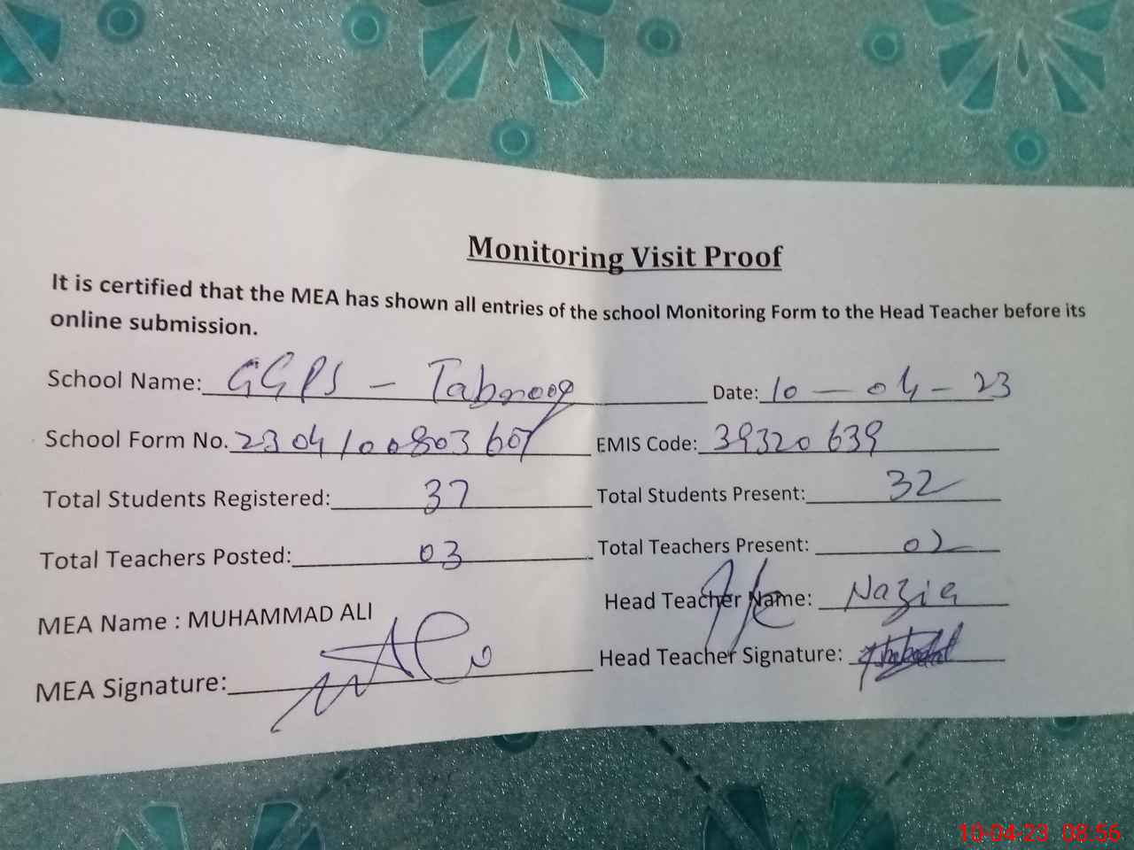 | EMIS Code: 39320639 | Name of School: GGPS TABROOQ | |||