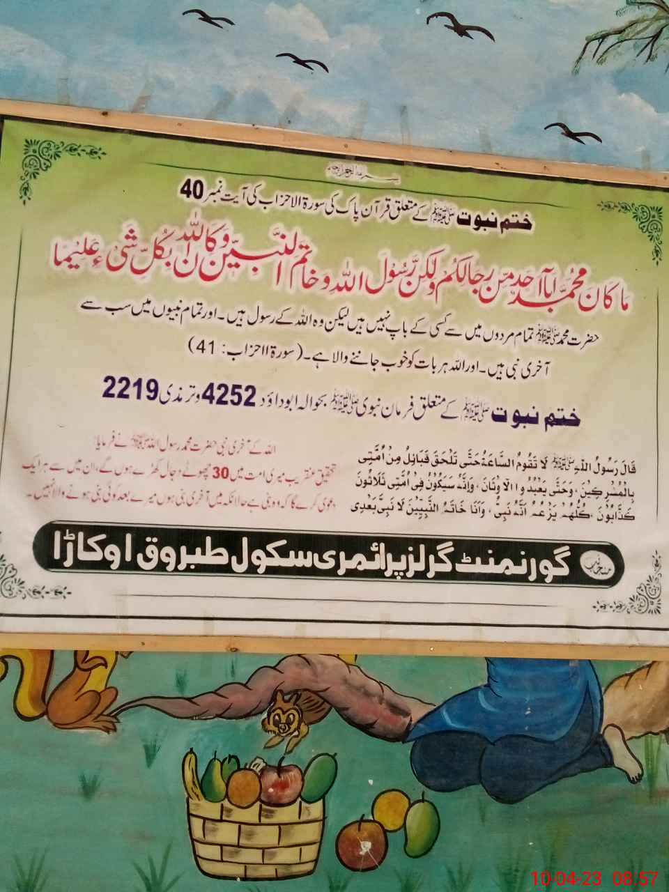 | District: OKARA | Tehsil: OKARA | Markaz: TABROOQ - FEMALE | Level: Primary | |