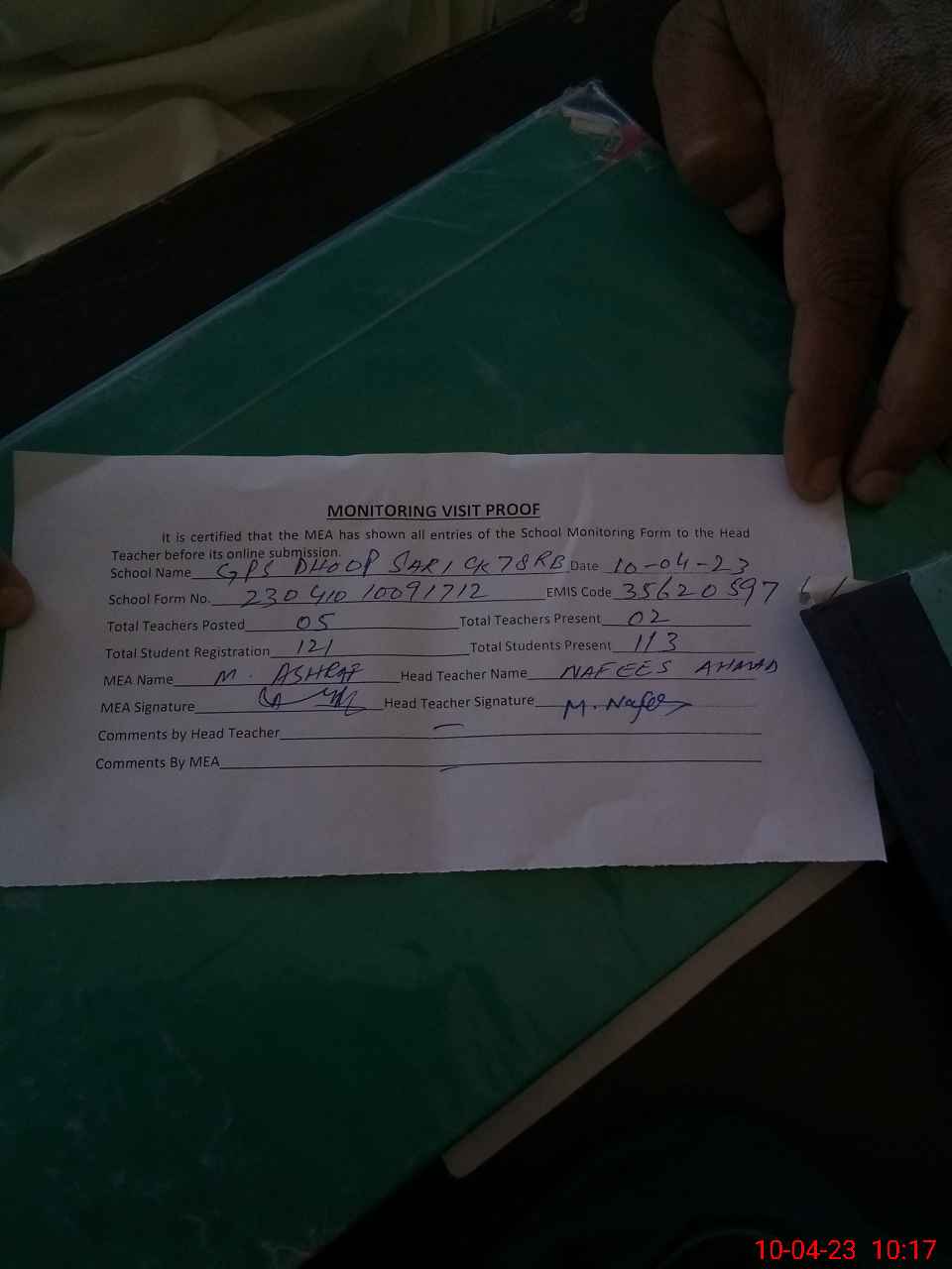 | EMIS Code: 35620597 | Name of School: GPS DHOOP SARI CHAK NO.78 | |||