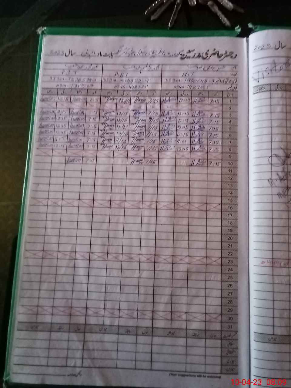 | CNIC | Full Name | Designation | R/C | Absence During Last Calender Month |