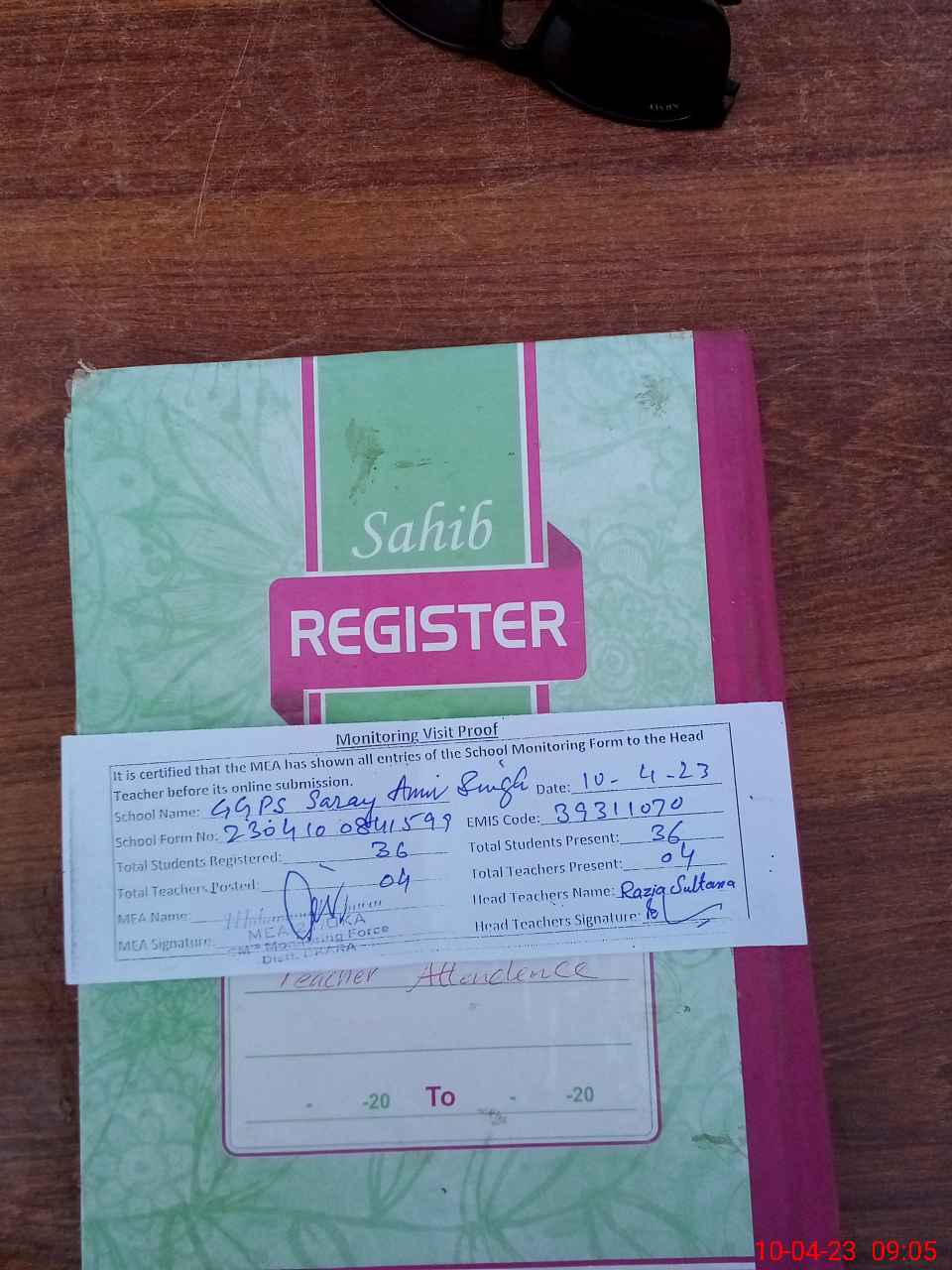 | EMIS Code: 39311070 | Name of School: GGPS SARAY AMIR SINGH | |||