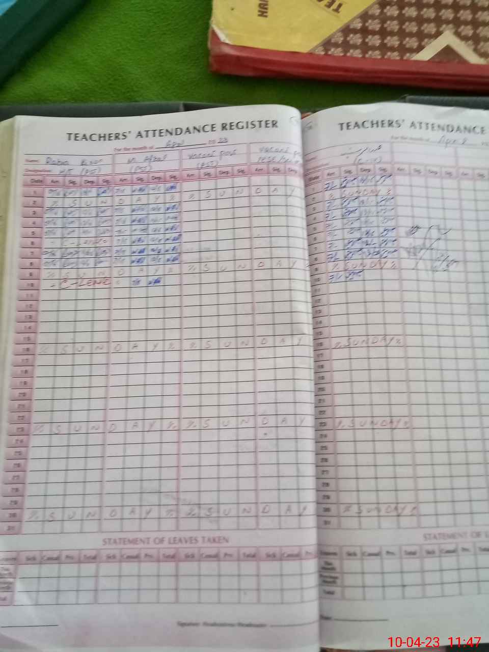 | Leave | Duty | Absent | Maternity | Medical | Ex- Pak |