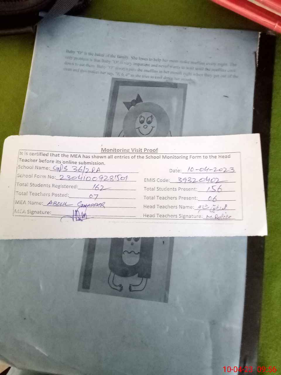 | EMIS Code: 39320402 | Name of School: GPS CHAK NO. 36/2-RA | |||