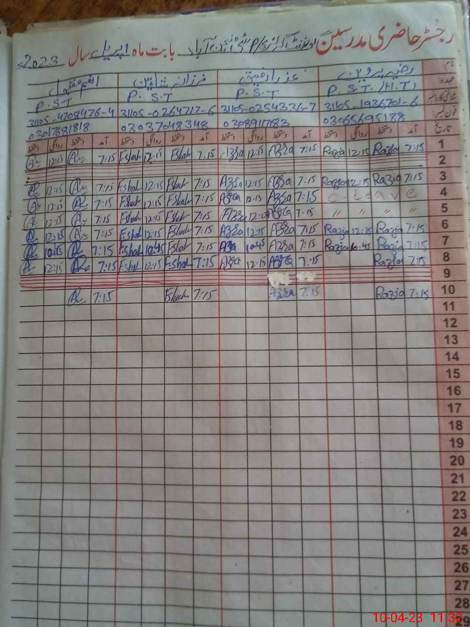 | Name: RA**** PA**** Designation: (School Headmaster's/Headmistress's) PST Phone/Cell Number: 03**** |