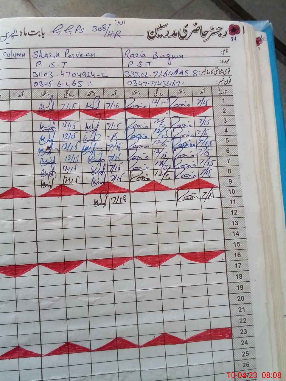 | Name: Sh**** Pe**** Designation: (School Headmaster's/Headmistress's) PST Phone/Cell Number: 03**** |