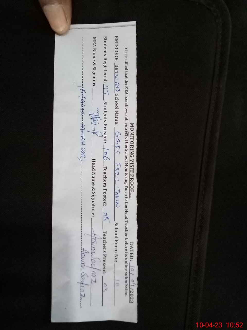 | EMIS Code: 38420633 | Name of School: GGPS FAZIL TOWN | |||