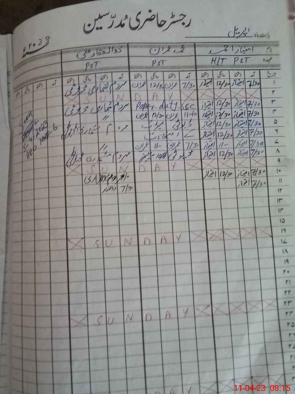 | 31**** | Mu**** Im**** | ESE | Contract | 0 | 0 | 0 | 0 | 0 | 0 | 0 | 0 | 0 | Exam Duty |