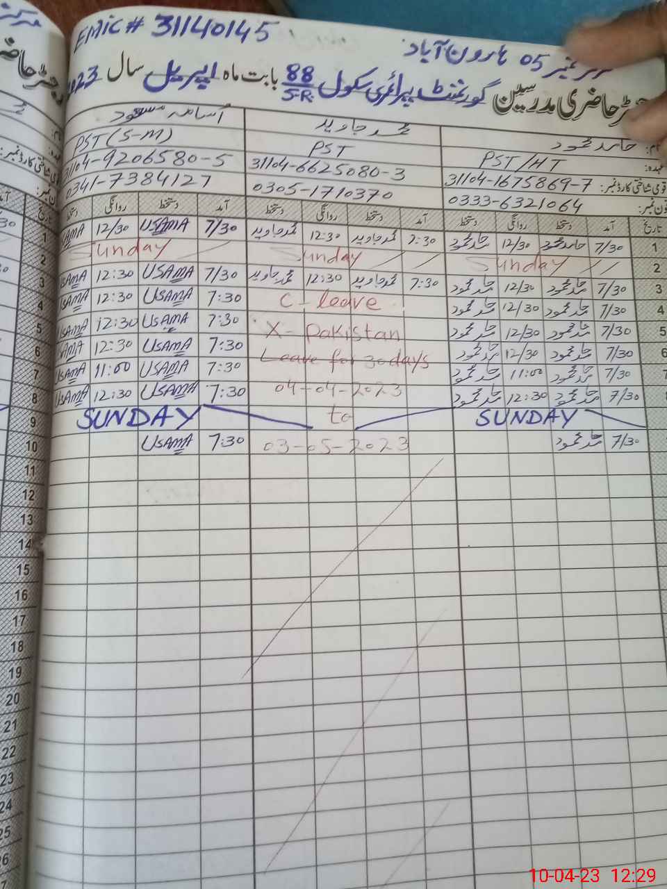 | Name: Us**** Ma**** Designation: (School Headmaster's/Headmistress's) PST Phone/Cell Number: 03**** |