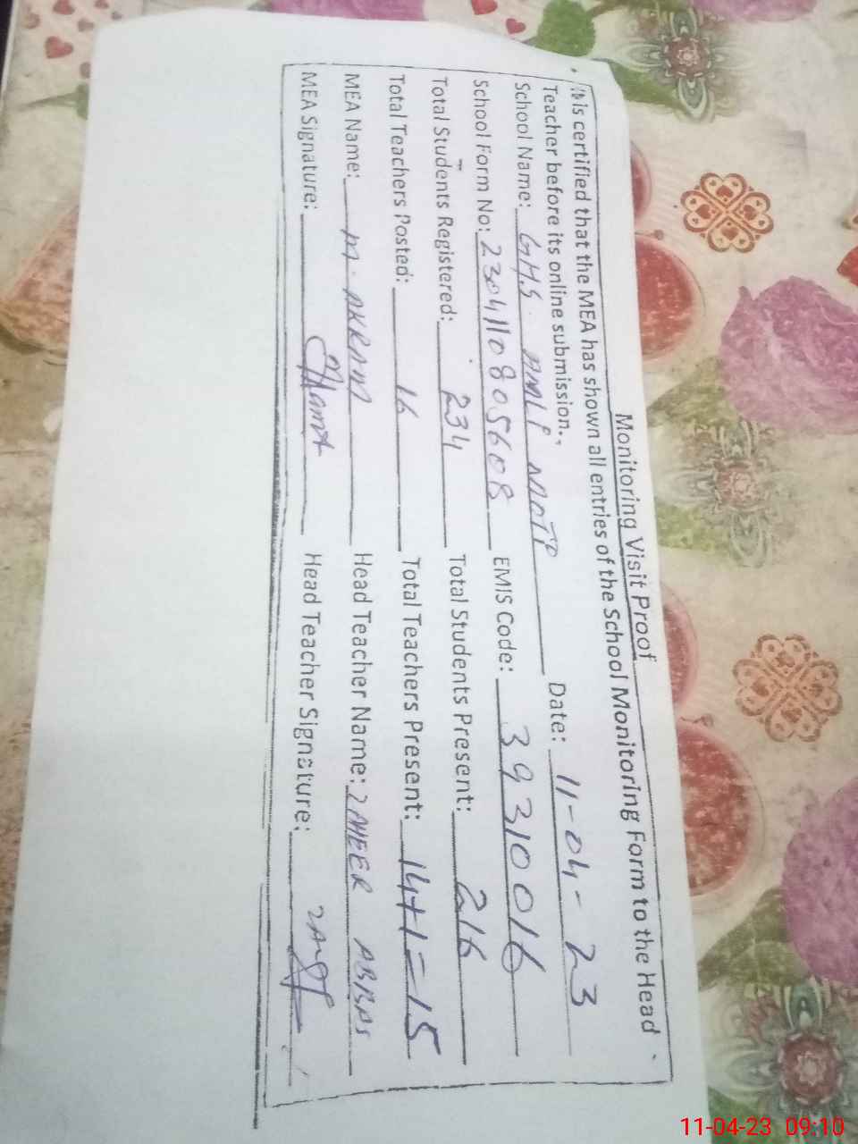 | EMIS Code: 39310016 | Name of School: GHS AMLI MOTI | |||
