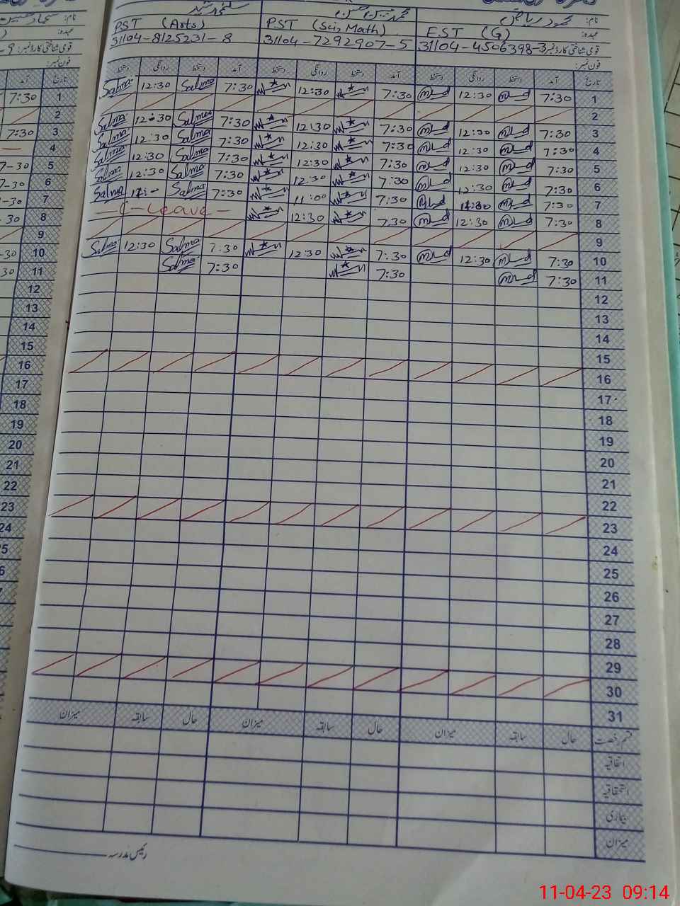 | CNIC | Full Name | Designation | R/C | Absence During Last Calender Month |