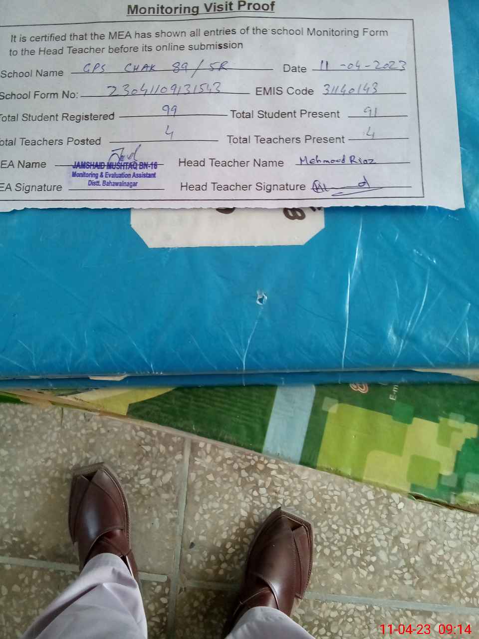 | Attendance Register | Head Teacher | MEA with School | Visit Proof |