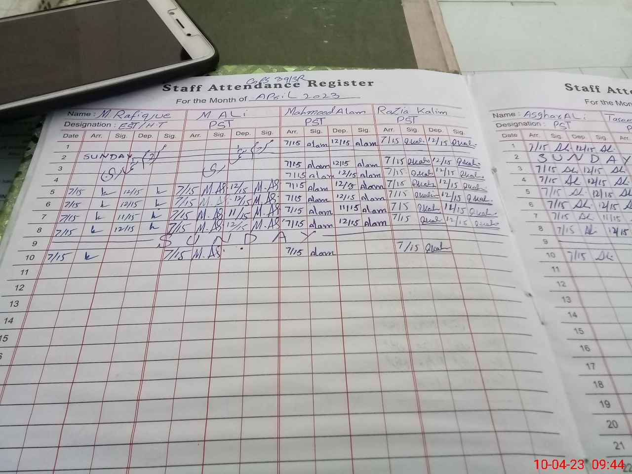 | Name: MU**** RA**** Designation: (School Headmaster's/Headmistress's) EST Phone/Cell Number: 03**** |