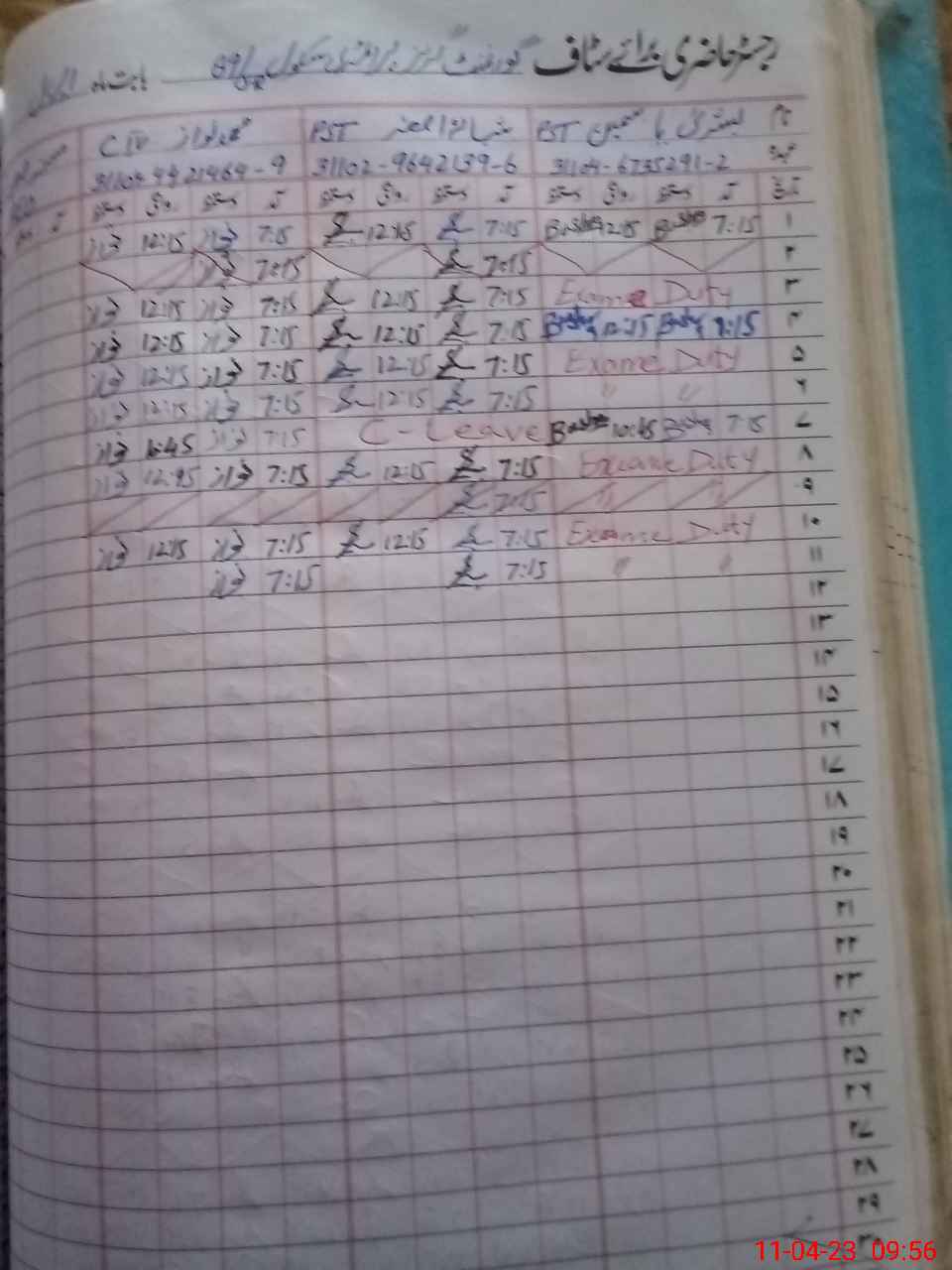 | 31**** | Bu**** Ya**** | ESE | Contract | 0 | 0 | 0 | 0 | 0 | 0 | 0 | 0 | 0 | Exam Duty |