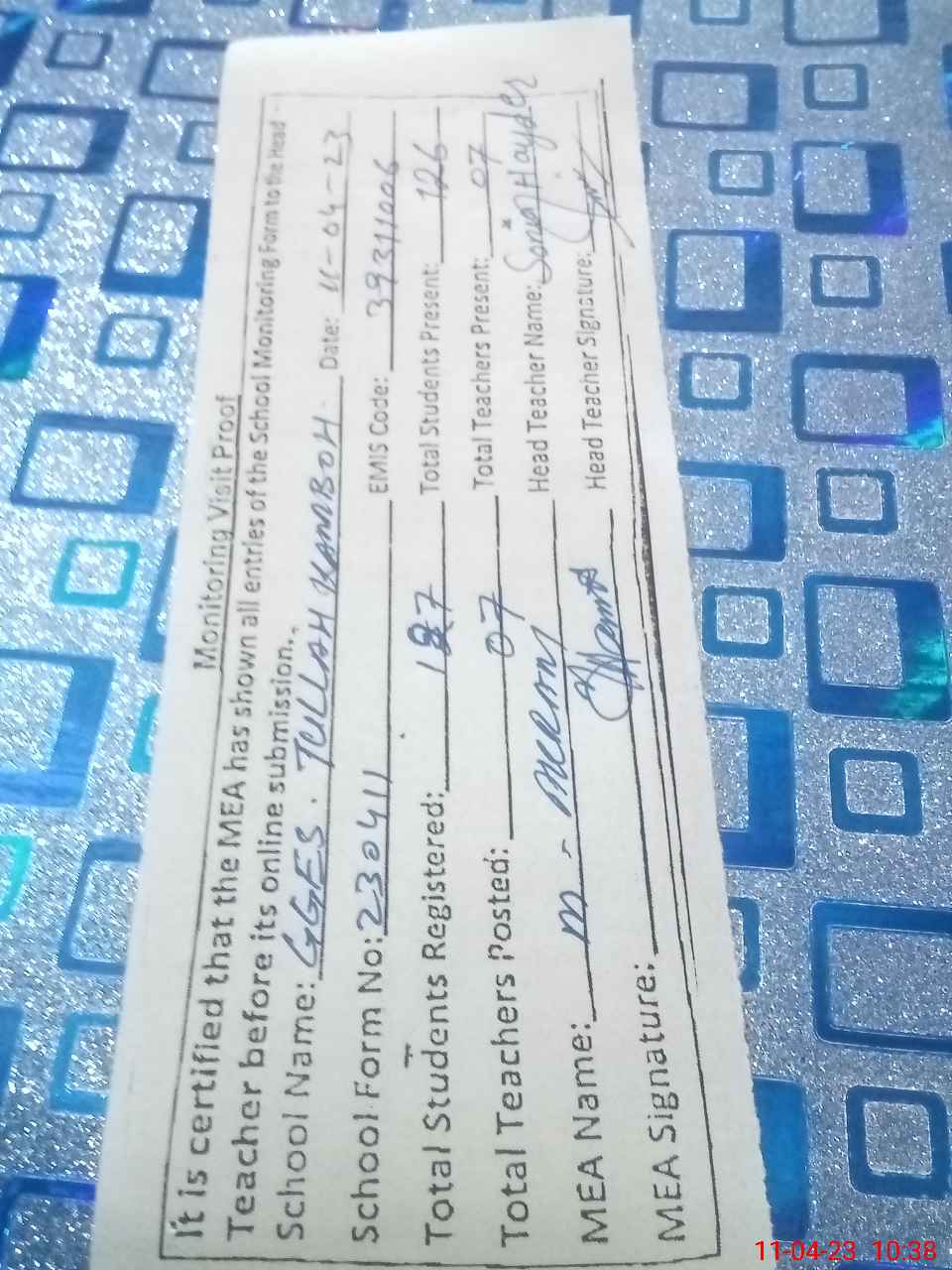 | EMIS Code: 39311006 | Name of School: GGES TULLAH KAMBOH | |||