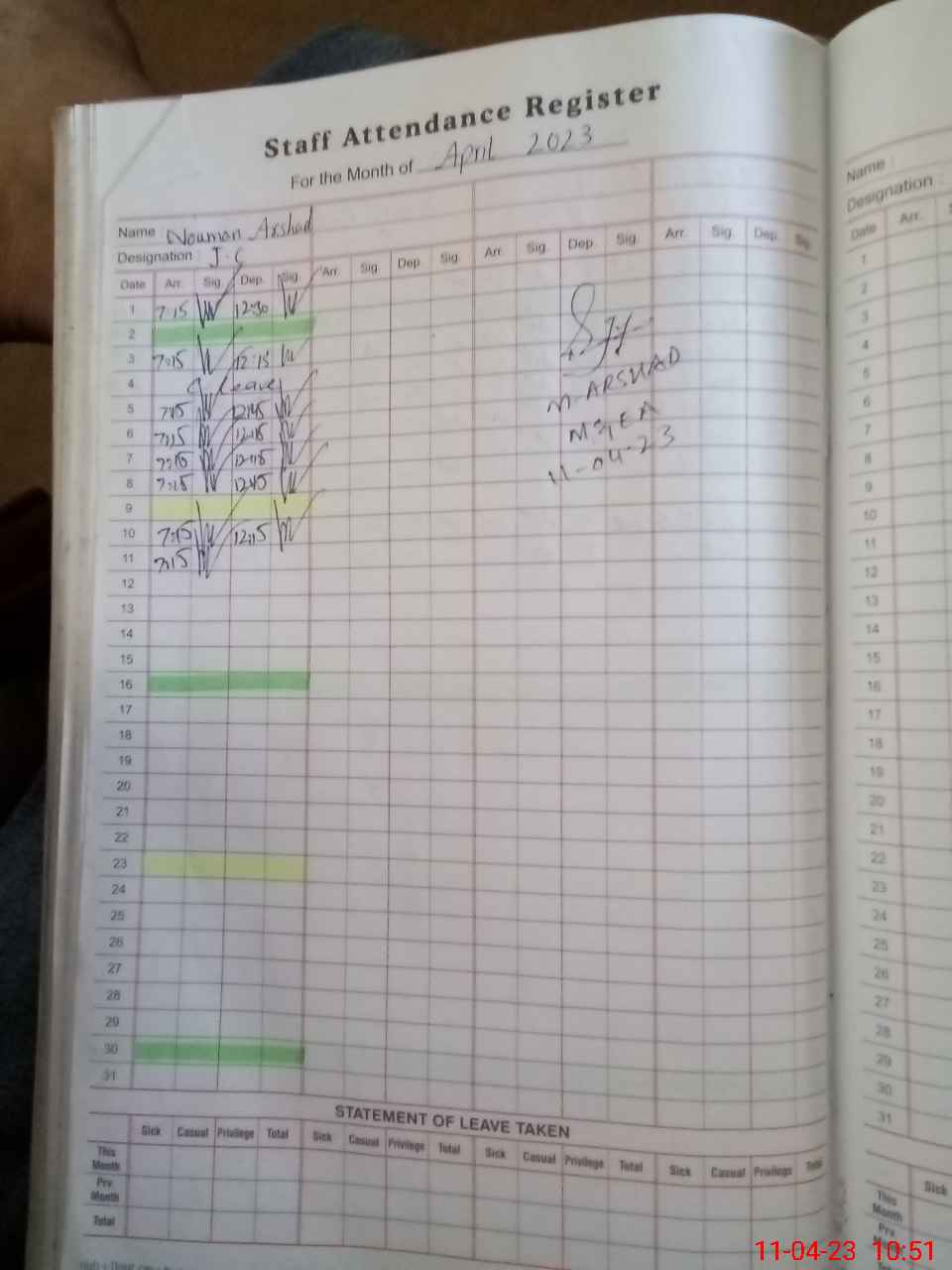 | 35**** | Ad**** Kh**** | EST | Regular | 0 | 0 | 0 | 0 | 0 | 0 | 0 | 0 | 0 | Exam Duty |