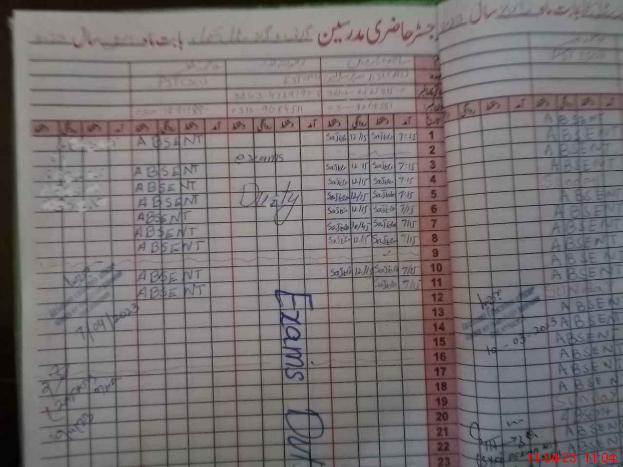 | Leave | Duty | Absent | Maternity | Medical | Ex- Pak |