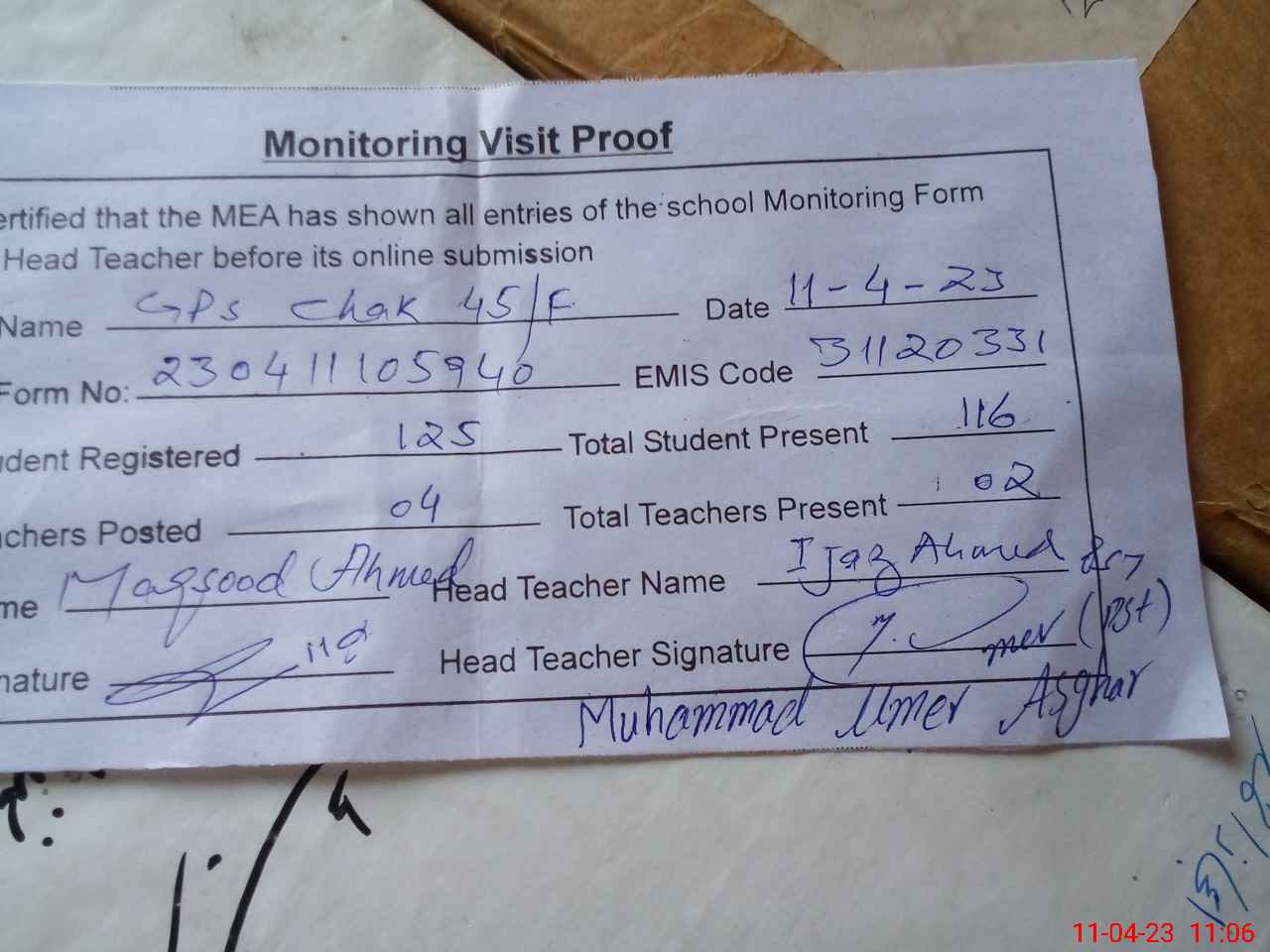 | EMIS Code: 31120331 | Name of School: GPS CHAK 45/F | |||