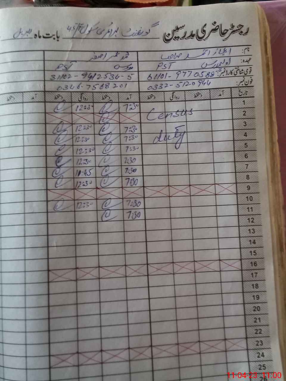 | Name: MUM**** AS**** Designation: (School Headmaster's/Headmistress's) PST Phone/Cell Number: 03**** |