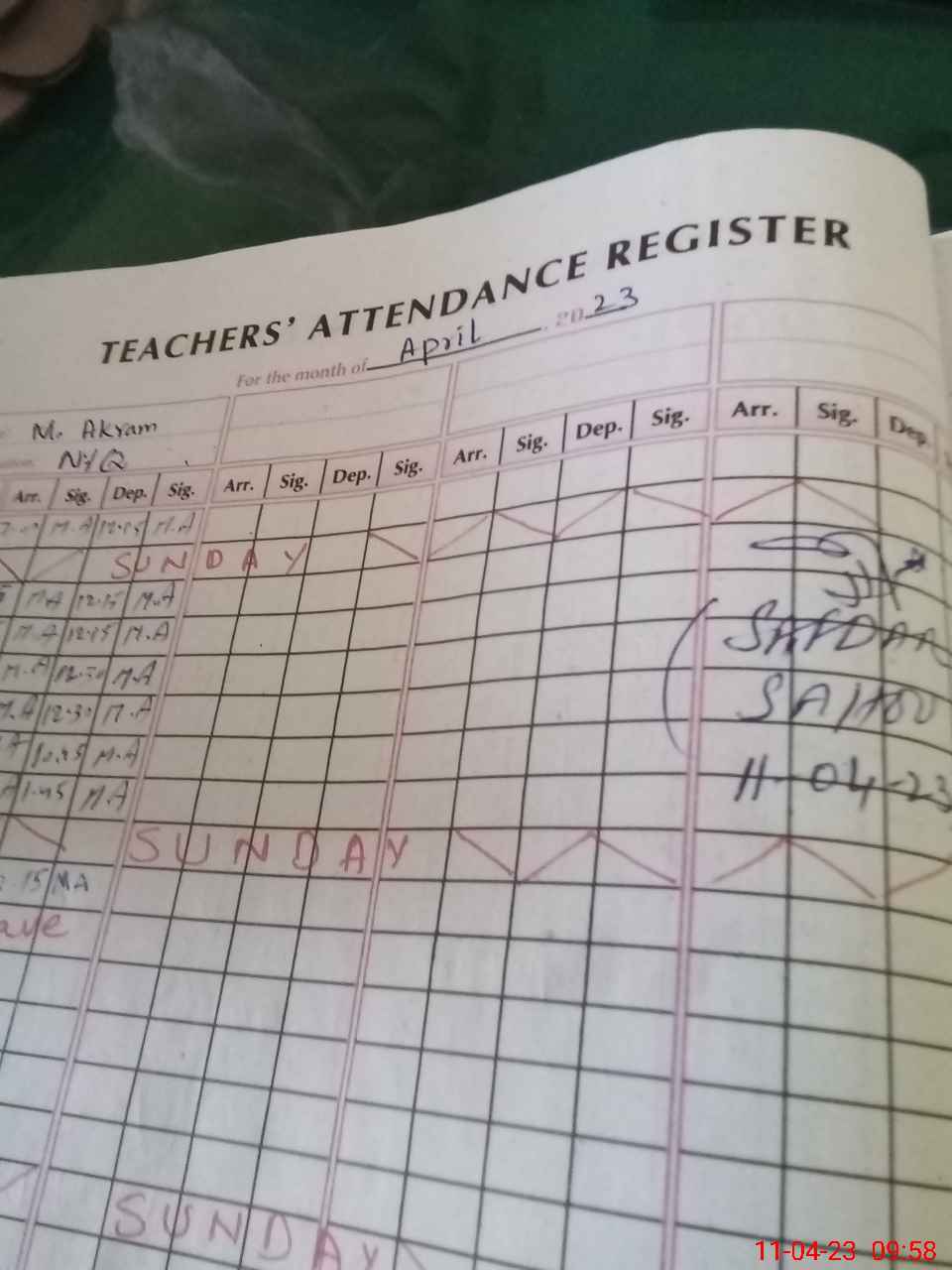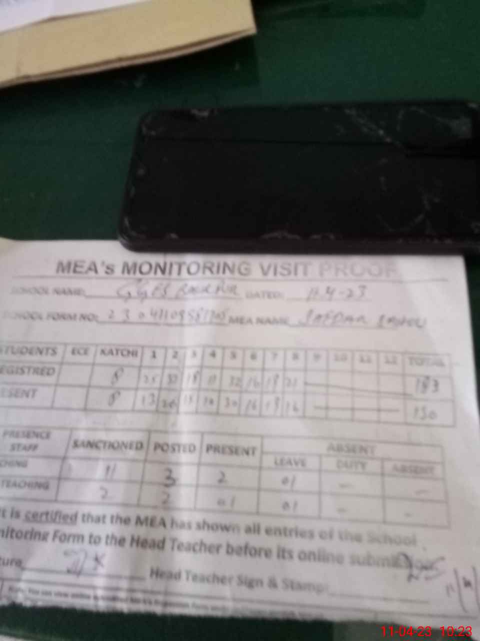| Attendance Register | Head Teacher | MEA with School | Visit Proof |