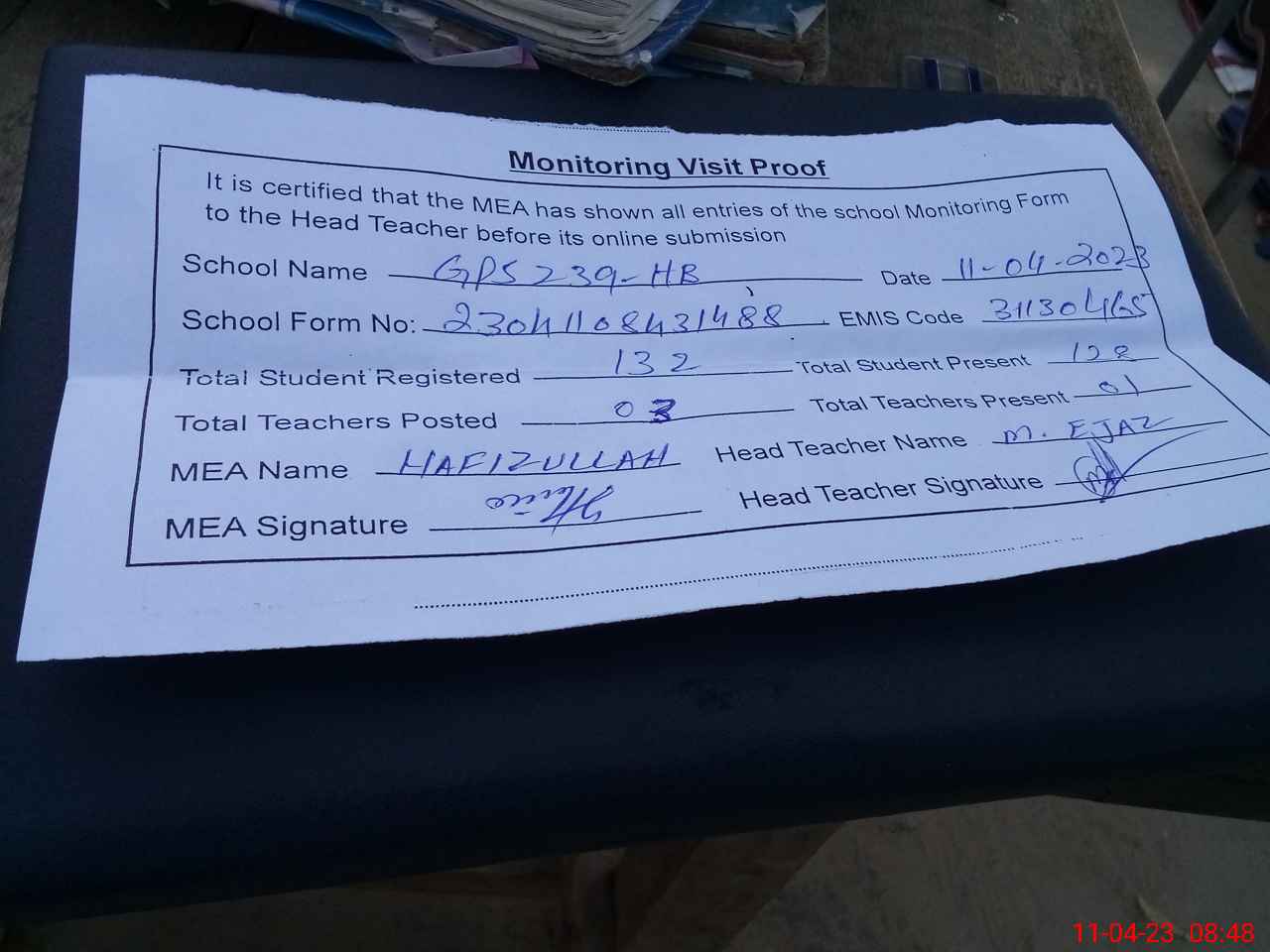| EMIS Code: 31130465 | Name of School: GPS CHAK NO 239 HB | |||