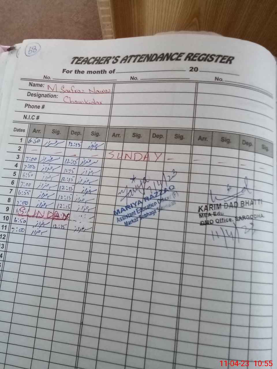 | Name: Sa**** Na**** Designation: (School Headmaster's/Headmistress's) SST Sci Phone/Cell Number: 03**** |