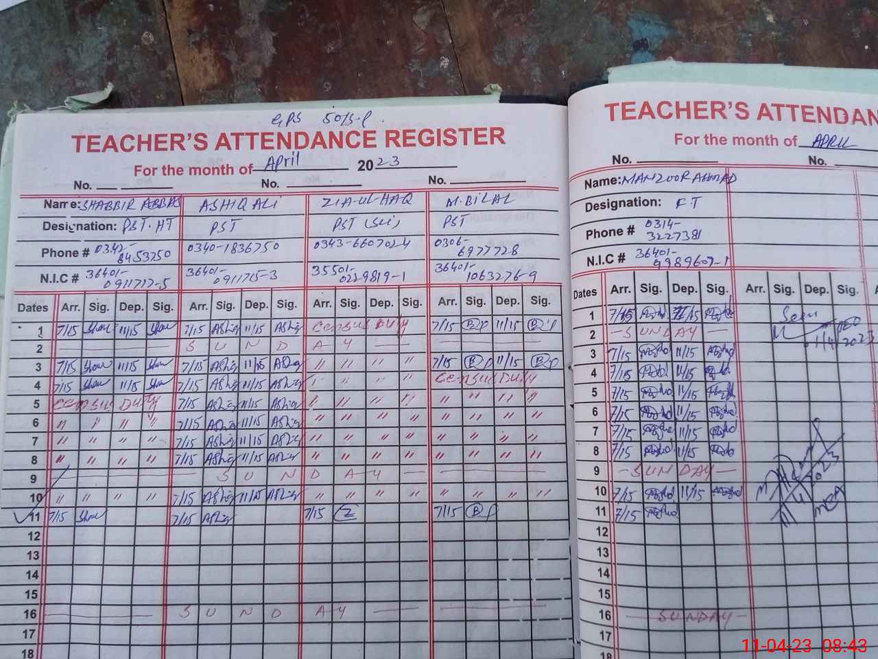 | Name: SH**** AB**** Designation: (School Headmaster's/Headmistress's) PST Phone/Cell Number: 03**** |