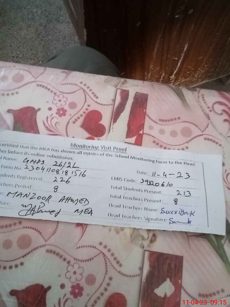 | Certified that this School was Inspected by the Undersigned MEA/DMO Today and the Information Stated Above is as Per Record. | |||||