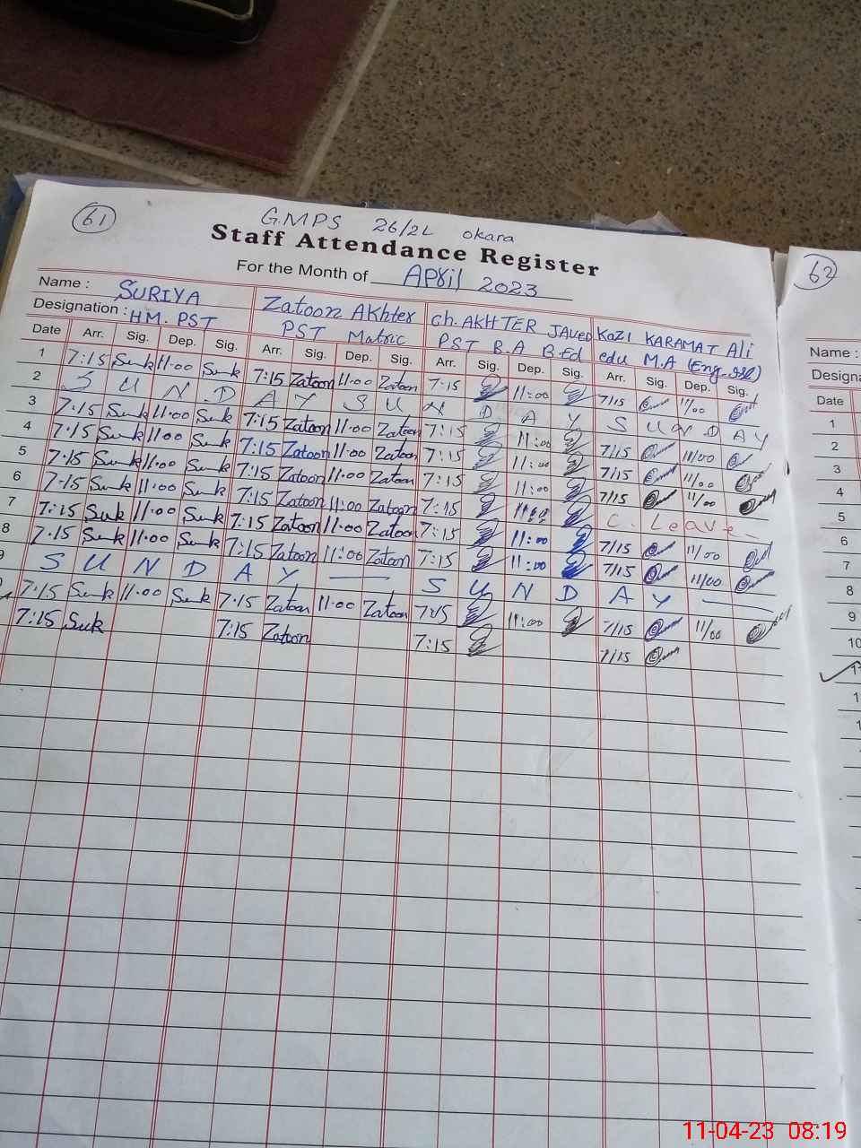 | Name: Aq**** Ir**** Designation: (School Headmaster's/Headmistress's) PST Phone/Cell Number: 03**** |