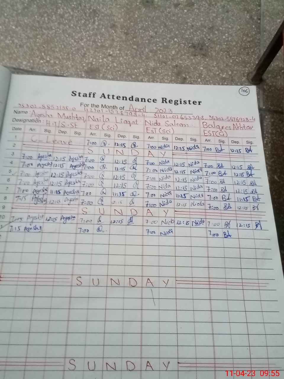 | CNIC | Full Name | Designation | R/C | Absence During Last Calender Month |