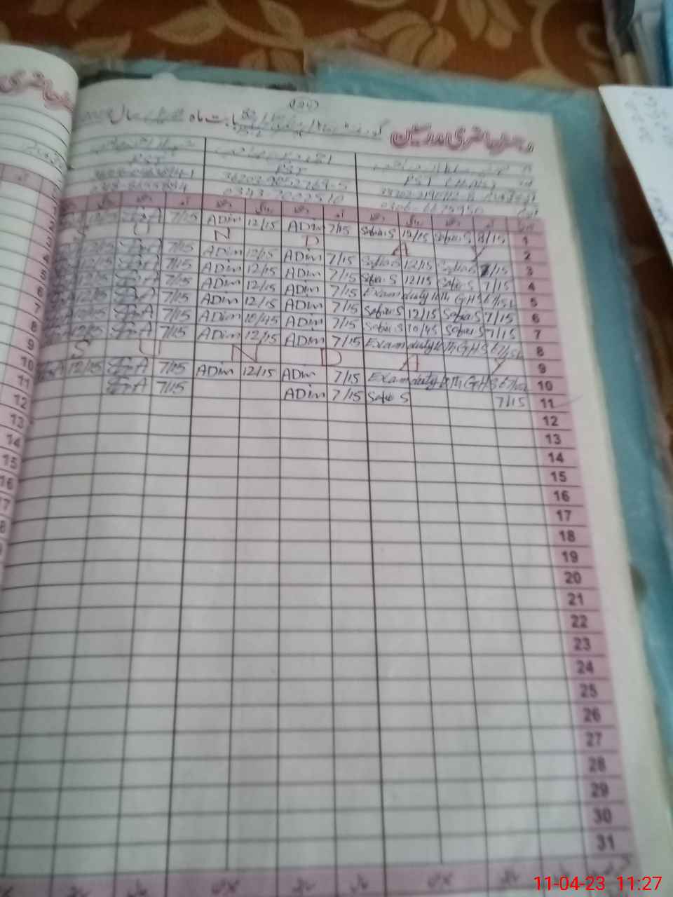 | CNIC | Full Name | Designation | R/C | Absence During Last Calender Month |