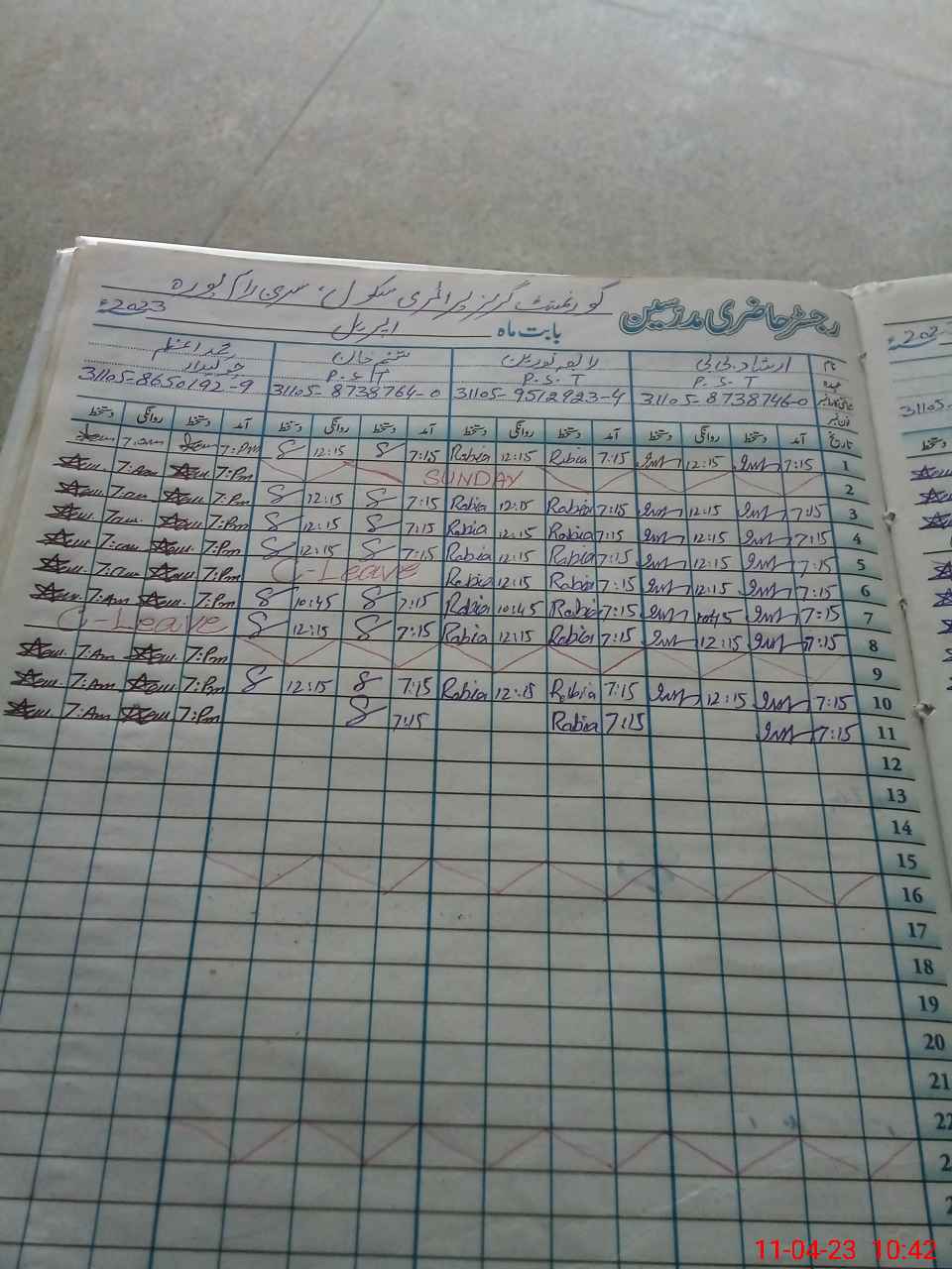 | Name: IR**** BI**** Designation: (School Headmaster's/Headmistress's) P S T Phone/Cell Number: 03**** |
