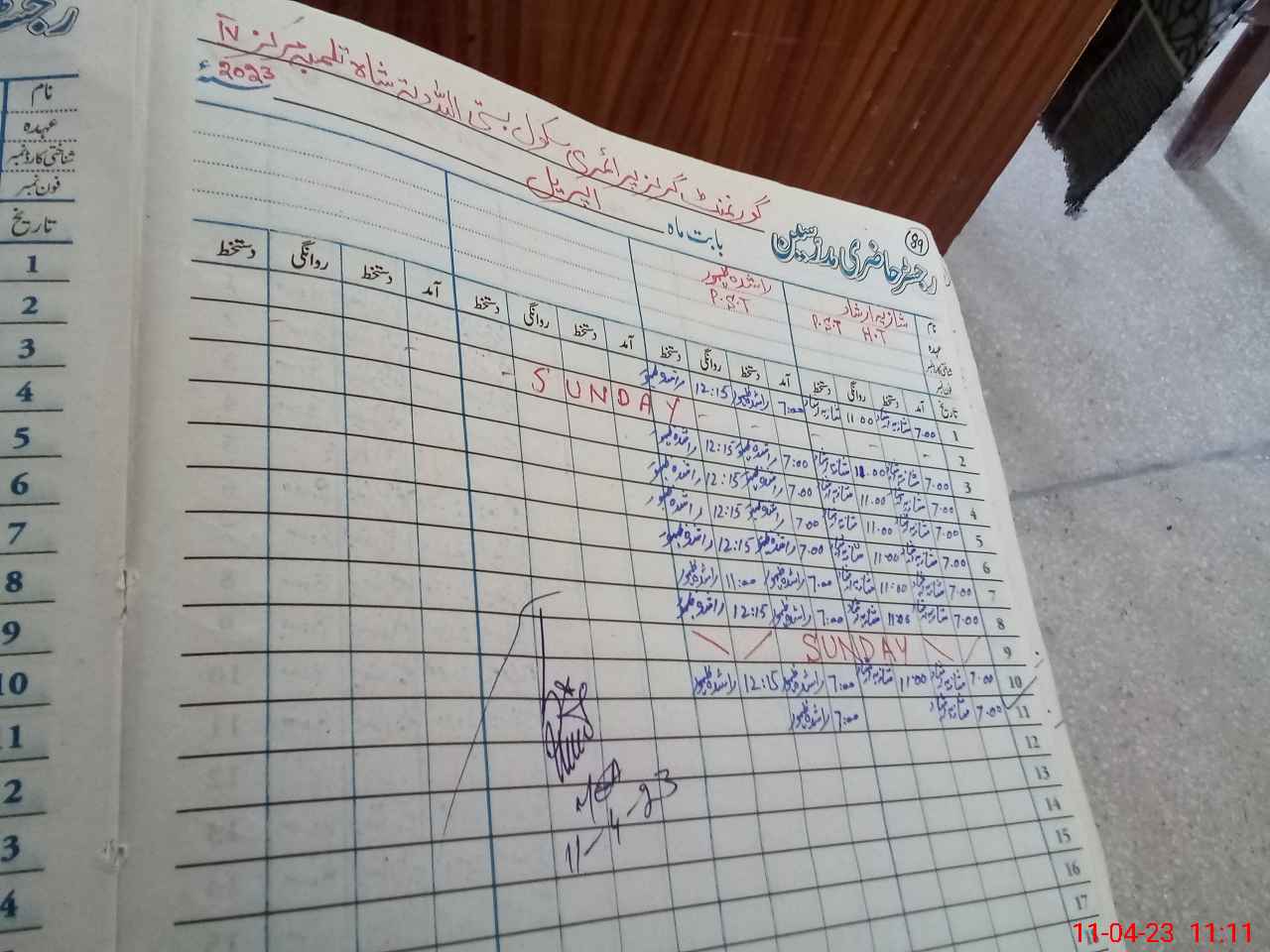 | Name: SH**** IR**** Designation: (School Headmaster's/Headmistress's) PST/PTC/JV Phone/Cell Number: 03**** |